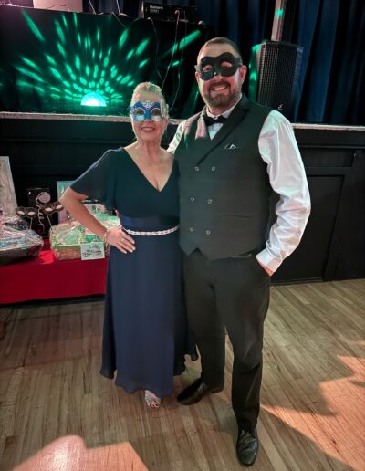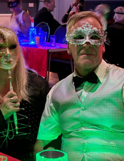 Guests were welcomed with a glass of champagne on arrival, setting a warm and festive tone right from the start. Everyone looked the part in their masks, bringing a touch of mystery and glamour to the ballroom. Of course, once the music started and the dance floor filled, a few masks came off – but the smiles stayed on all night.